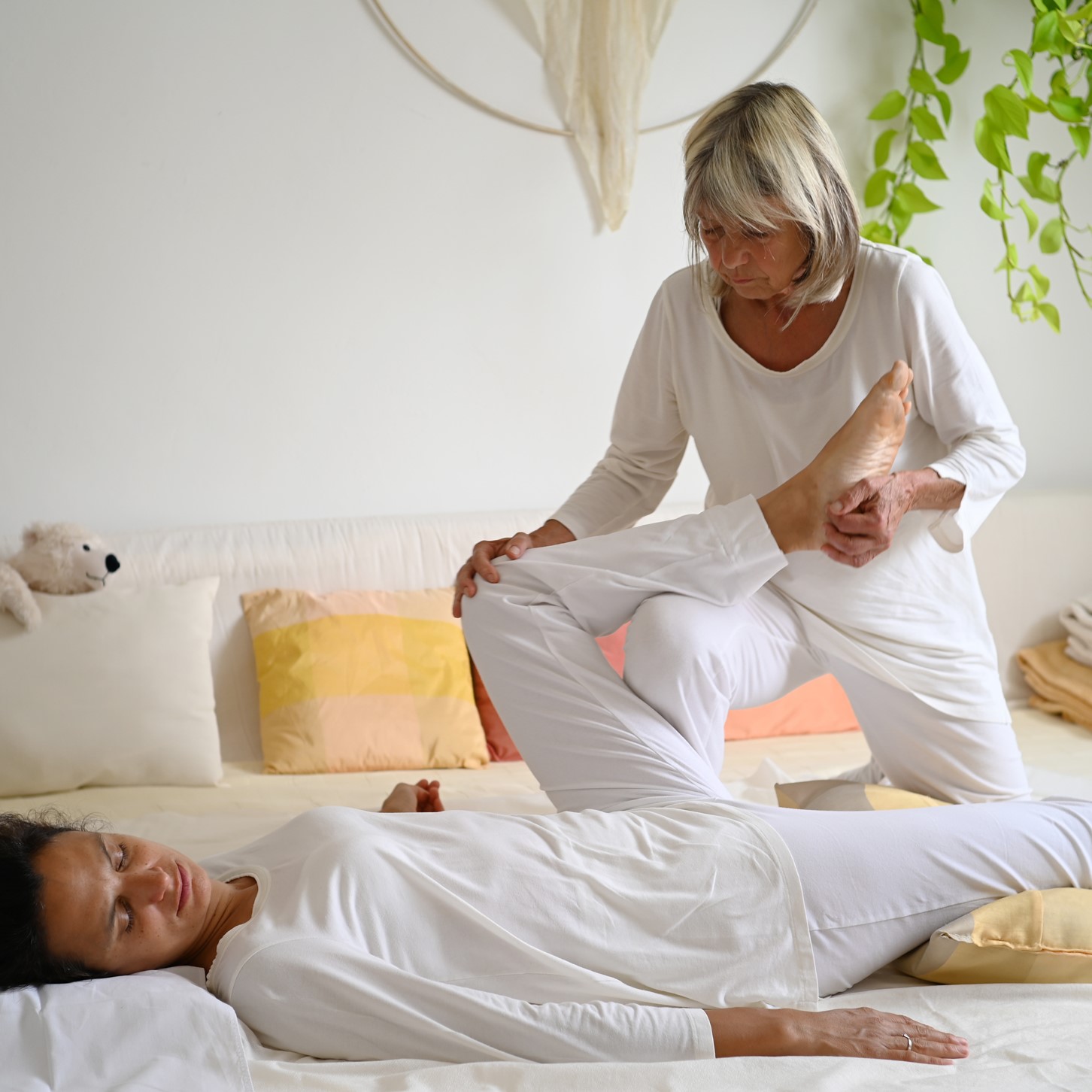 Um Ihre verspannten Körperbereiche zu lockern und den heilsamen körpereigenen Energiefluss wieder herzustellen helfen Druck auf Meridianpunkte, sanfte Dehnungen, sowie einfühlsames Lehnen.